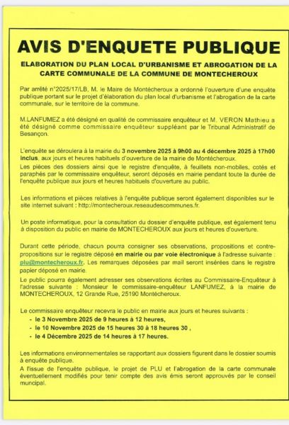 Le commisaire enquêteur recevra le public en mairie aux jours et heures suivantes: